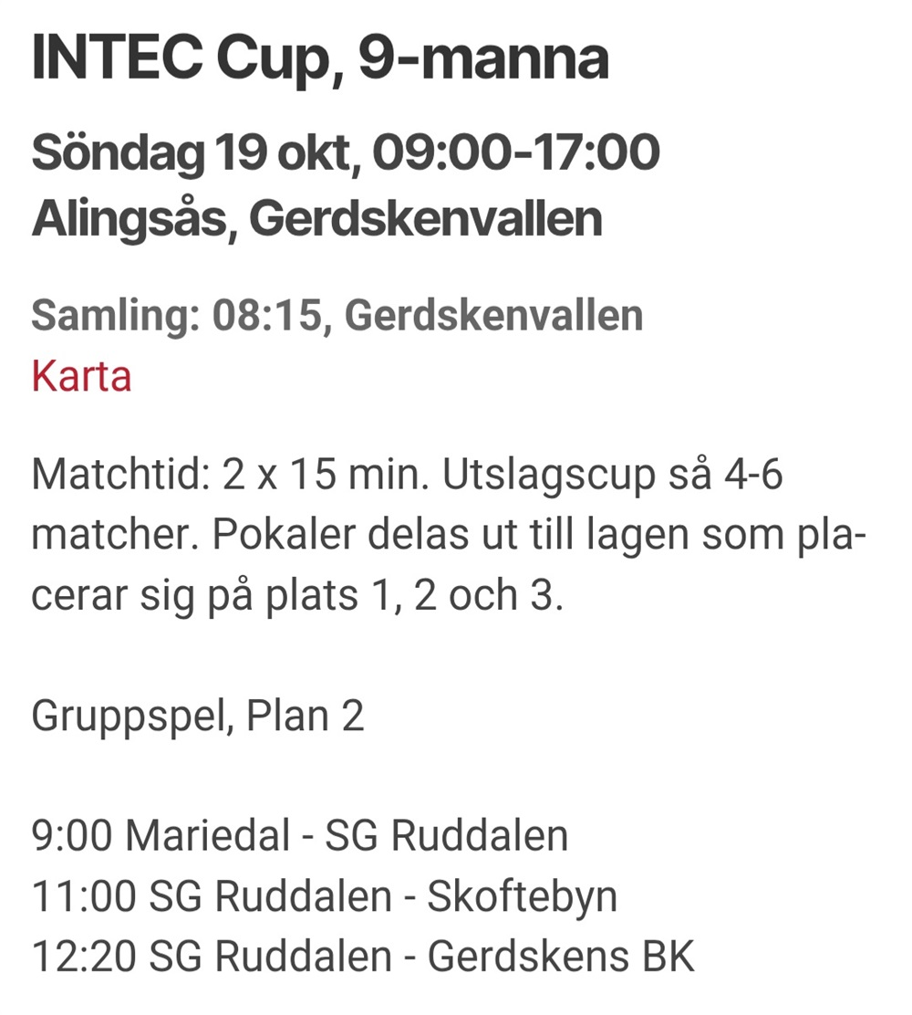 För er som missat så ligger det info om dagen i kalendern, aktivitet 19/10. Tryck på den så ser ni alla tider från gruppspel till slutspel.